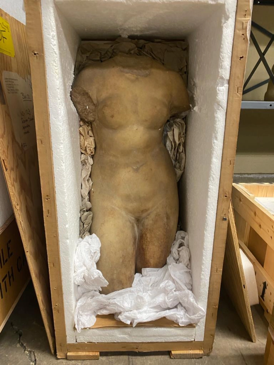 Τα αντικείμενα προέρχονται από κατασχέσεις σε αποθήκες του Βρετανού αρχαιοπώλη Robin Symes και στην γκαλερί του Michael Ward στην Νέα Υόρκη.