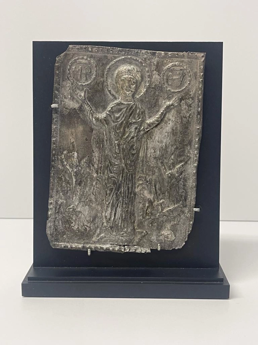Στις επαναπατρισθείσες αρχαιότητες βρίσκονται επίσης ένα αργυρό εικονίδιο με παράσταση Θεοτόκου βυζαντινών χρόνων και ένα αργυρό πινάκιο με φυτική, ζωική και γεωμετρική διακόσμηση.