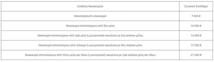 Το συνολικό εισόδημα δεν μπορεί να υπερβαίνει τα 21.000 ευρώ ετησίως, ανεξαρτήτως της σύνθεσης του νοικοκυριού.