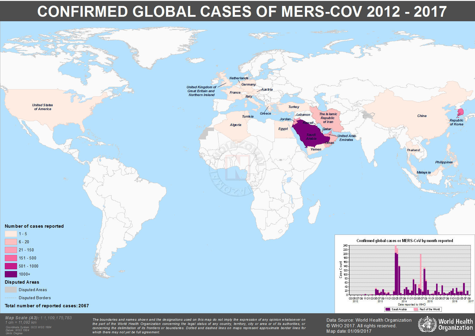 Χάρτης εξάπλωσης «MERS Cov» 2012 – 2017, Π.Ο.Υ |