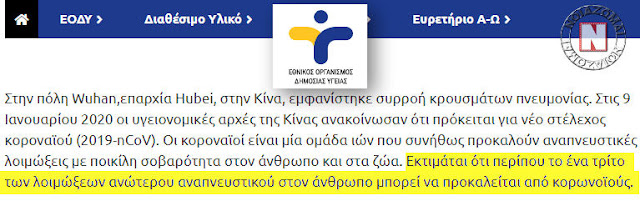 Ο Ε.Ο.Δ.Υ. έγραφε τότε ότι «με βάση την υπάρχουσα κλινική εμπειρία, η λοίμωξη από τον νέο κοροναϊό (σ.σ. MERS Cov) εκδηλώνεται συνήθως ως πνευμονία, με εμφάνιση οξείας, σοβαρής νόσου του αναπνευστικού, με πυρετό, βήχα, δύσπνοια και αναπνευστική δυσχέρεια»!