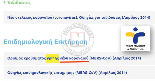 «Ορισμός κρούσματος γρίπης νέου κοροναϊού (MERS-CoV)»!