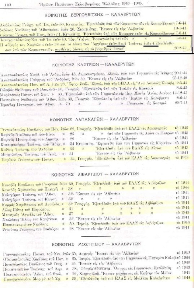 1943-1944 ΦΟΝΕΥΘΕΝΤΕΣ ΥΠΟ ΤΩΝ ΕΛΑΣΙΤΩΝ, ΑΙΓΙΑΛΙΑ – ΚΑΛΑΒΡΥΤΑ – ΦΕΝΕΟ ΞΕΚΛΗΡΙΣΜΑ 4μελους ΟΙΚΟΓΕΝΕΙΑΣ ΜΕΤΑ ΤΩΝ ΤΕΚΝΩΝ 14 ΚΑΙ 11 Ετών.