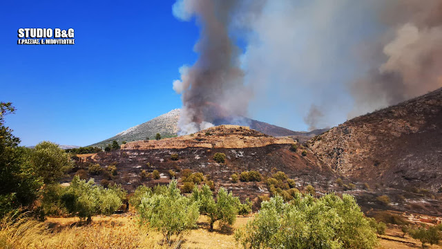 Η πυρκαγιά εκδηλώθηκε αρχικά απέναντι από τον Τάφο του Αγαμέμνωνα κατευθυνόμενη σε παρακείμενη ρεματιά, με τον άνεμο να την σπρώχνει προς Προσύμνη. Όμως στη συνέχεια εξαπλώθηκε ανεξέλεγκτα απειλώντας ευθέως και τον αρχαιολογικό χώρο.