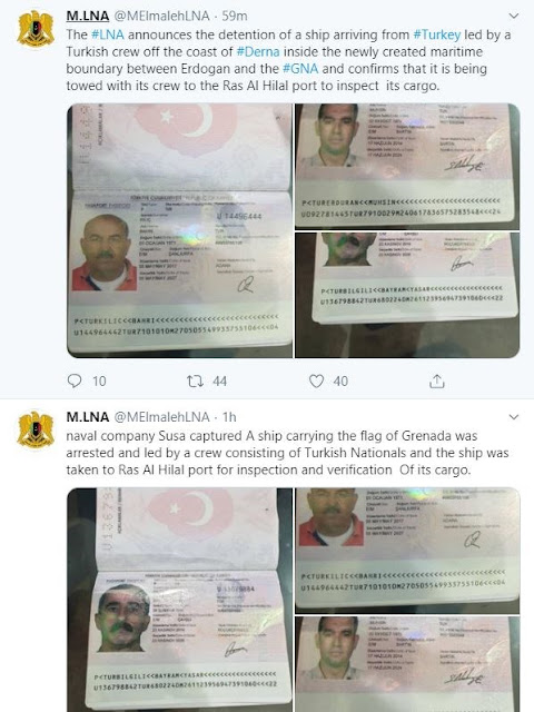 Πριν από λίγο, όπως έγινε γνωστό από μέσο ενημέρωσης προσκείμενο στον στρατάρχη, Χαφτάρ, ο LNA κατέλαβε πλοίο με τουρκικό πλήρωμα και σημαία Γρανάδας που κατευθυνόταν προς τη Λιβύη.