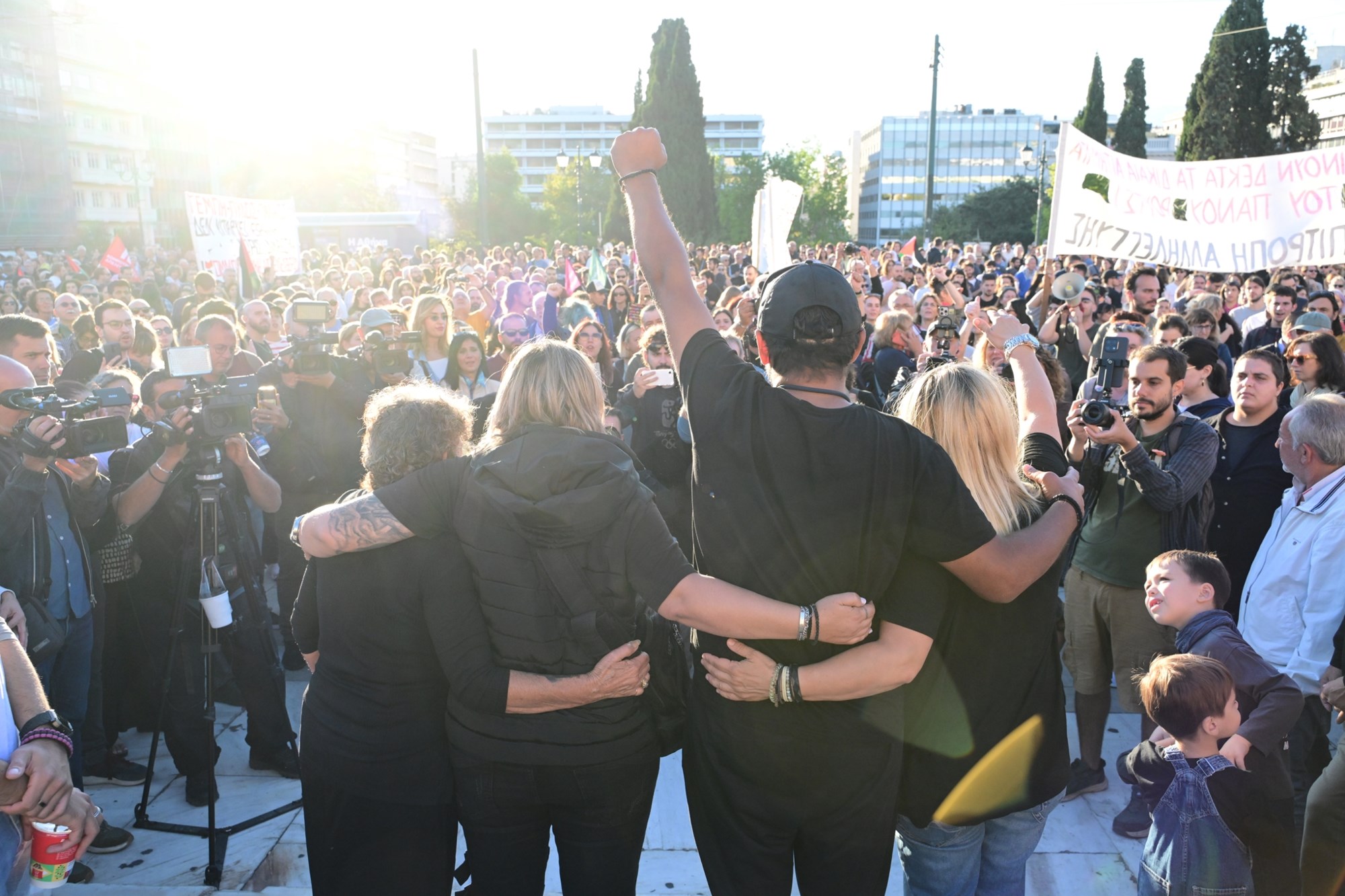 Οι οικογένειες των θυμάτων των Τεμπών μαζί με χιλιάδες ανθρώπους συγκεντρώθηκαν και αυτή την Κυριακή στο Σύνταγμα.