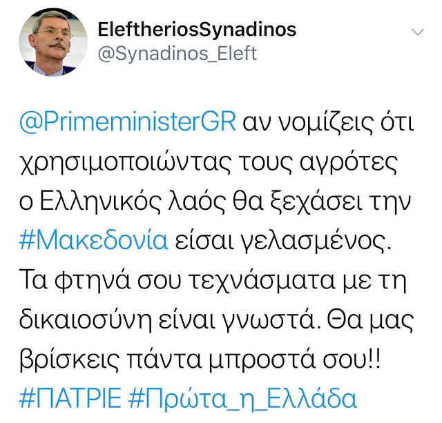Ο Ευρωβουλευτής Ελευθέριος Συναδινός τα έχει «πάρει στο κρανίο» και φαίνεται πως έχει αντιληφθεί πλήρως τον τρόπο με τον οποίο κινούνται και απεργάζονται τα ανθελληνικά σχέδια οι μπολσεβίκοι του ΣΥΡΙΖΑ