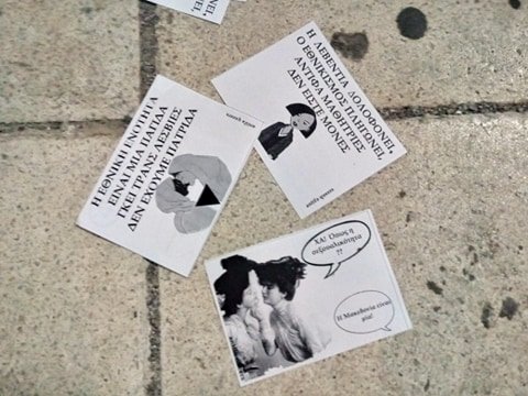 Οι αναρχικές ομάδες επιχείρησαν να «απαντήσουν» με φυλλάδια και συνθήματα στους τοίχους των σχολείων με -υποτίθεται- αντιφασιστικό και σίγουρα ανθελληνικό περιεχόμενο.