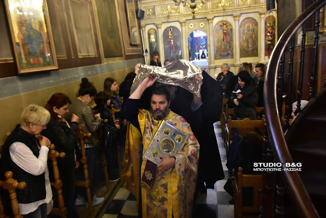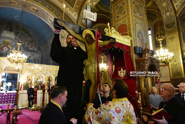 Με άκρα ταπεινότητα και σε κλίμα φόρτισης στον Μητροπολιτικό ναό του Αγίου Γεωργίου στην πόλη του Ναυπλίου έγινε η ακολουθία της αποκαθήλωσης Ιερουργούντος του Ιερέα π. Ευάγγελου Πολυχρονόπουλου