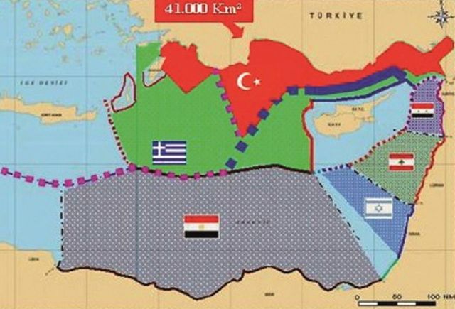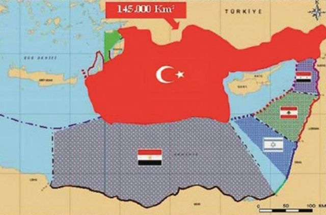 Έτσι, επιχειρεί να αρπάξει μέρος της ελληνικής και κυπριακής ΑΟΖ και να φτάσει τα «νερά της» έως την Αίγυπτο.