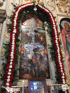 » Ξεκινήσαμε με τη Λωξάντρα για το Μπαλουκλί. Μου το’χε από καιρό τάξει πως θα με πήγαινε να μου δείξει τους τάφους της μάνας της και της γιαγιάς της –της καημένης της κυρα-Ζωίτσας ντε, που εκείνη έμαθε στη Λωξάντρα να μαγειρεύει έτσι όμορφα. Είχα βάλει στο σακίδιό μου τη φωτογραφική μου μηχανή, ένα μπουκαλάκι νερό, ένα κουλούρι και τα κιτάπια μου -τους χάρτες μου, τους οδηγούς μου, τις σημειώσεις μου. Εκείνη πήρε μαζί της ένα μισογάλονο να το γεμίσει αγίασμα, πήρε κ’ένα καλαθάκι με κάτι τούτα-κείνα για να τσιμπήσουμε σαν πεινάσουμε. Το Μπαλουκλί είναι στο Επταπύργιο, κοντά στην Πύλη της Σηλυβρίας, μέσα σε πυκνό δάσος από κυπαρίσσια. Εκεί που τελείωσαν τα σπίτια, αρχίνησαν τα περβόλια. Κι εκεί που τελείωσαν τα περβόλια, αρχίνησαν τα νεκροταφεία. Απέραντα νεκροταφεία, μουσουλμανικά. Τάφοι μέσα σε ραδίκια, σε ζοχούς, σε λάπατα και σε αγριομαργαρίτες. Κοντοστάθηκε η Λωξάντρα σε ένα περβάζι να πάρει δύο ανάσες, βρήκα την ευκαιρία να χαζέψω τις ζαλισμένες ταφόπλακες που μερικές γέρνουν στα δεξά, μερικές στα ζερβά. Μετά από κάμποσο ποδαρόδρομο φθάσαμε επιτέλους στον προορισμό μας, στη Μονή της Ζωοδόχου Πηγής. Αναθάρρεψε η Λωξάντρα σαν μπήκε στον περίβολο της Μονής, λες κι έμπαινε στην αυλή του σπιτιού της. Γέλασε το μέσα της. Εθαύμασα τα φροντισμένα παρτέρια με τις τριανταφυλλιές, τις εύμορφες μαρμάρινες ζαρντινιέρες, τ’αγάλματα και τις σκιές της μεγάλης πλατανιάς. Εθαύμασα την ησυχία. Σε ένα τοιχίο, λίγα βήματα από την είσοδο, υπάρχει ένα ανάγλυφο με αληθινά λουλούδια που ρέει νεράκι απάνου τους και σαν βρέξεις το χέρι σου να ραντίσεις το μέτωπό σου, ευφραίνεται η ψυχούλα σου. Το βλέμμα μου έπεσε σε μία κρήνη. Πάνω από τη βρυσούλα, είδα την καρκινική επιγραφή που λέγεται πως βρισκόταν στον περίβολο της Αγιά-Σοφιάς. Νίψον ανομήματα, μη μόναν όψιν. Κι απ’την καλή να τη διαβάσεις κι από την ανάποδη, το νόημα ίδιο μένει. Έβγαλα τις σημειώσεις μου κι άρχισα να ψάχνω σα μαθητούδι στους οδηγούς μου να διαβάσω για ετούτο εδώ το μέρος. Η Λωξάντρα που με είδε να φυλλομετρώ τις σελίδες, πήρε ύφος περισπούδαστο κι άρχισε να μου διηγείται για τον Ιουστινιανό. Που έπασχε από τα νεφρά του και ήρθε στο Μπαλουκλί να βρει τη γιατρεία του. Τότες είναι που έχτισε την εκκλησία της Ζωοδόχου Πηγής με το υλικό που είχε περισσέψει σα χτίστηκε η Αγιά-Σοφιά. Χαμήλωσε τον τόνο της φωνής της. Κι έσκυψε να μου εκμυστηρευθεί πως εκείνον το ναό τον καταστρέψανε οι Γενίτσαροι και τούτος που υπάρχει τώρα χτίστηκε πολύ αργότερα. Έκλεισα τα δικά μου τα βιβλία κι αφέθηκα στη δική της την ξενάγηση. Γι’αυτό δεν ήλθα άλλωστε; Για να ιδώ ετούτο τον τόπο με τα δικά της μάτια.Στις μαρμάρινες πλάκες του δαπέδου, έβλεπες λογής λογής επιγραφές. Και μερικά πεσμένα φύλλα να σου κρύβουνε τις λέξεις. Πλησιάσαμε την είσοδο του Ναού. Ο φύλακας -ένας κοντός μελαψός άντρας με ένα παχύ μουστάκι- κλείδωνε εκείνη τη στιγμή την πόρτα. Ώχου, σκέφτηκα, τι γκαντεμιά είναι αυτή; Μα σαν είδε τη Λωξάντρα, έστριψε τα μεγάλα του κλειδιά αντίστροφα και μας έμπασε μέσα. Τεσεκιούρ εντερίμ, του είπε εκείνη και του χαμογέλασε. Κι ήμασταν τώρα οι δυο μας μέσα στην εκκλησιά να ακούμε μόνο τα δικά μας βήματα. Η Λωξάντρα αρχίνησε να φιλάει τις εικόνες, σταυροκοπήθηκε κάμποσες φορές και ψέλλισε μερικές δεήσεις, φροντίζοντας να μνημονεύσει τις χάρες που ζητούσε από την Παναγιά. Με αγριοκοίταξε και μερικές φορές που έβγαζα φωτ