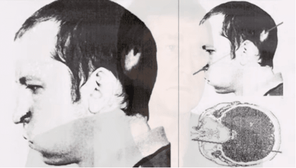 Η ακτίνα μπήκε από το πίσω μέρος του κεφαλιού του Anatoli Bugorski και βγήκε από τη μύτη του.