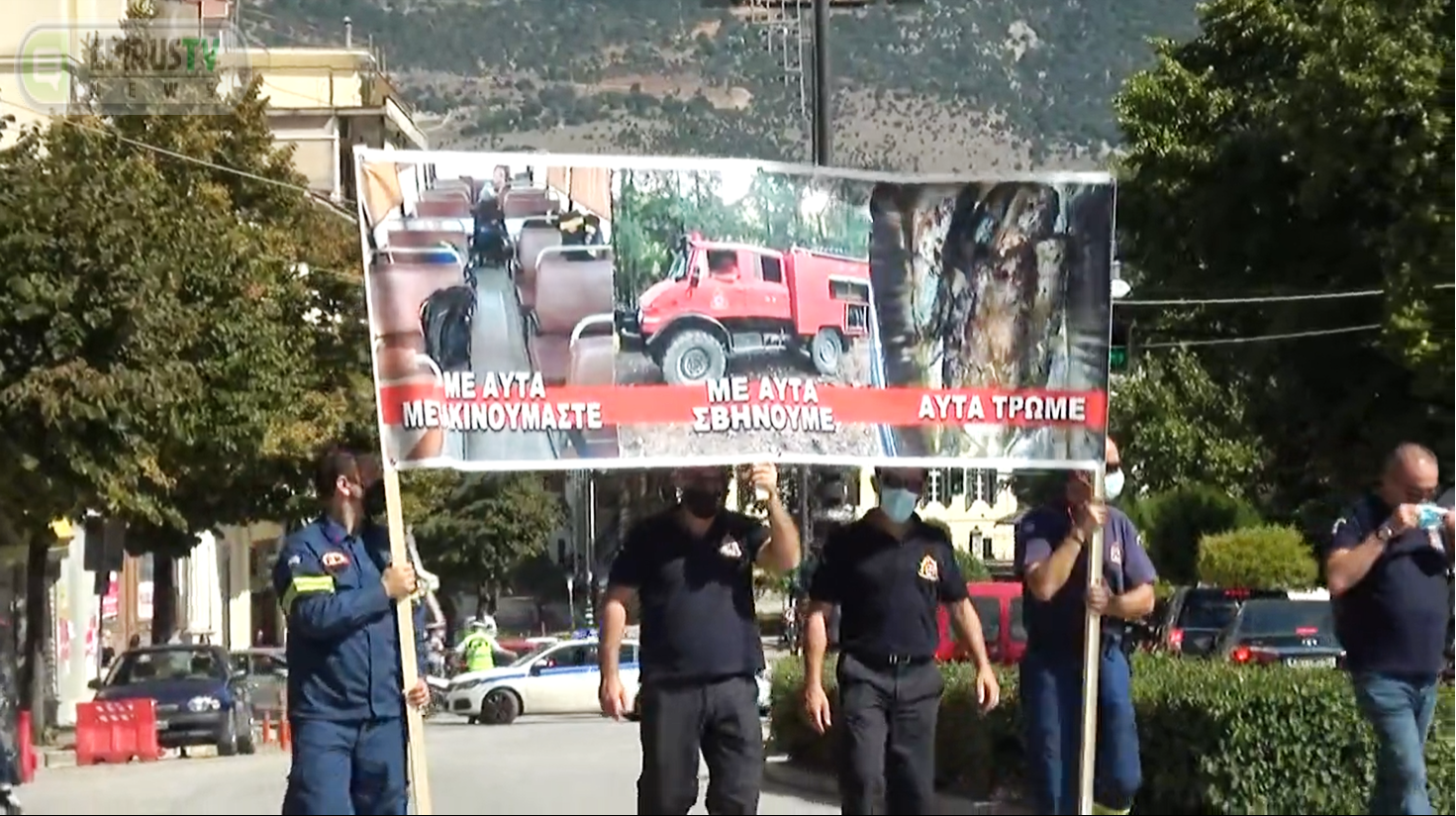Με κεντρικό σύνθημα «καλοκαίρι στις φωτιές ,το χειμώνα στις ψευτιές» οι πυροσβέστες διέσχισαν κεντρικούς δρόμους της πόλης και κατέληξαν στην κεντρική πλατεία .