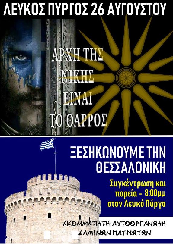 Το κάλεσμα κάνει η Ακομμάτιστη Αυτοοργάνωση Ελλήνων Πατριωτών, που τους περασμένους μήνες ξεσήκωσε την Θεσσαλονίκη!