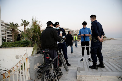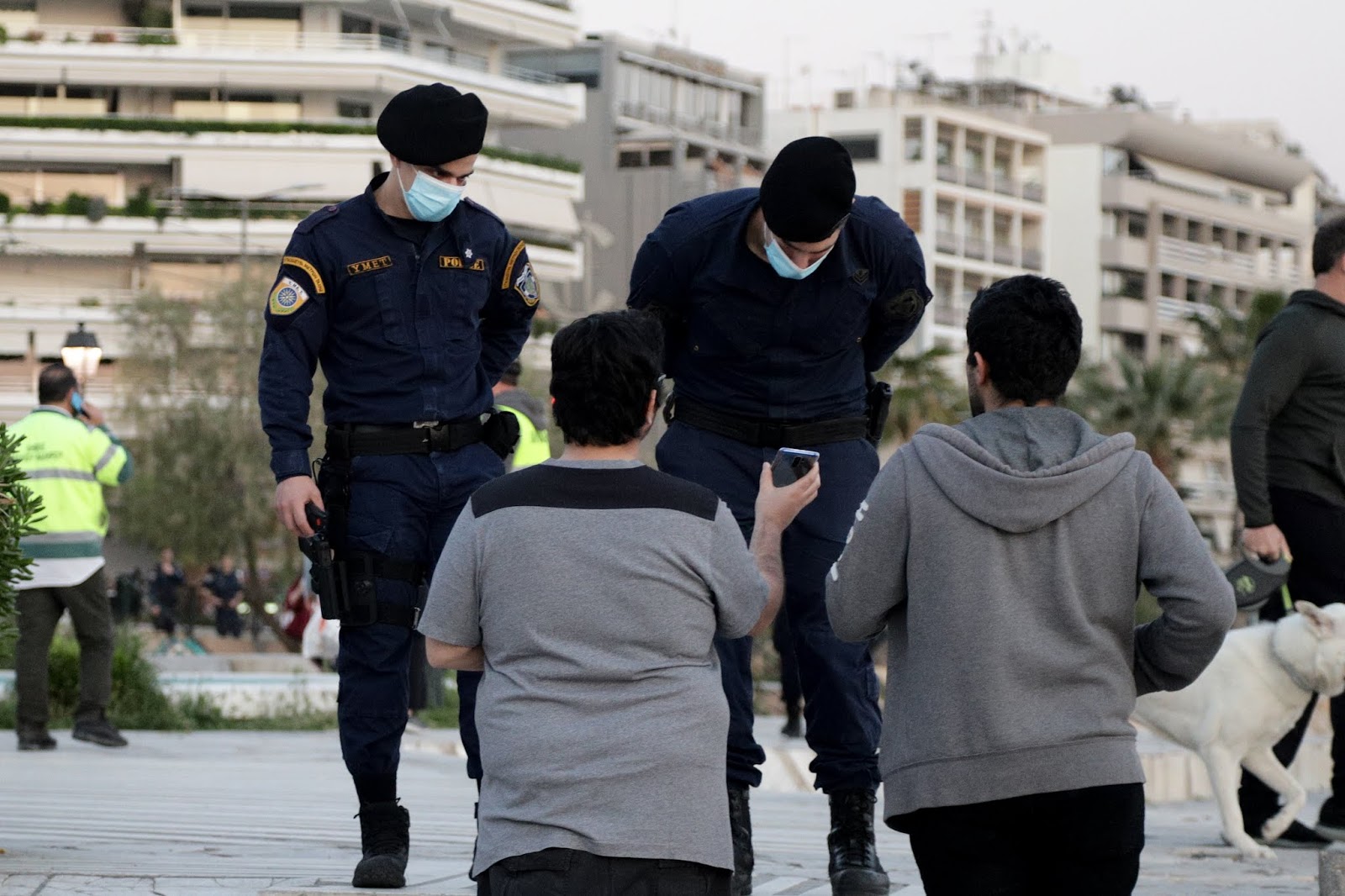 Λίγο πιο κάτω, στον Φλοίσβο συναντήσαμε πεζή περιπολία της αστυνομίας η οποία έκανε ελέγχους σε περαστικούς ώστε να διαπιστωθεί αν έχουν την απαραίτητη «έγκριση» για την βόλτα τους.