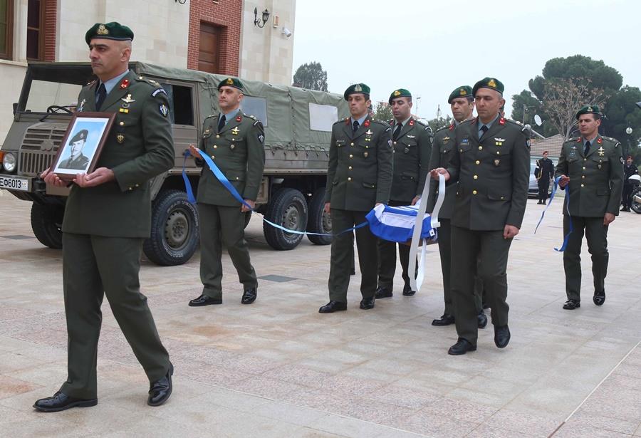 Έξω από την εκκλησία είχε παραταχθεί άγημα από τις Δυνάμεις Καταδρομών, ενώ το μικρό φέρετρο κάλυπταν οι σημαίες της Ελλάδας και της Κύπρου.