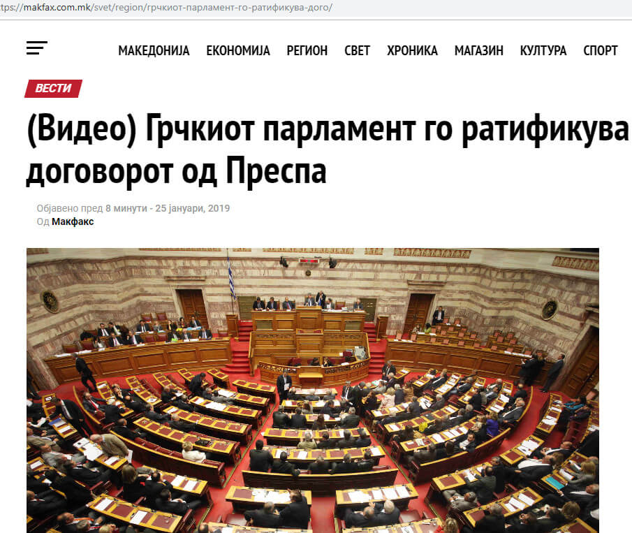 Πρώτο θέμα στα… «γυφτοσκοπιανά» μέσα είναι η ψήφιση της συμφωνίας των Πρεσπών από την Ελληνική Βουλή, η οποία «βαφτίζει» την ΠΓΔΜ «Βόρεια Μακεδονία».
