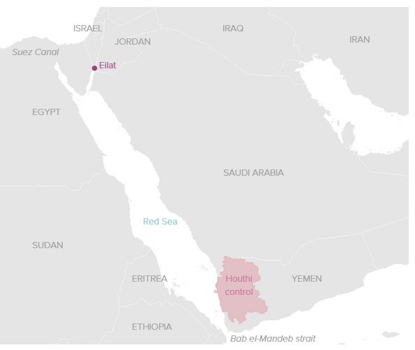 Το στενό Μπαμπ ελ-Μαντέμπ, που βρίσκεται μεταξύ Τζιμπουτί και Υεμένης, υπήρξε το επίκεντρο των επιθέσεων των Houthis σε πλοία.