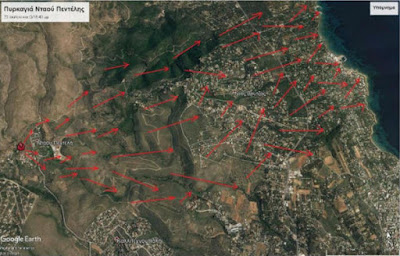Άποψη των περιοχών εξάπλωσης της πυρκαγιάς
