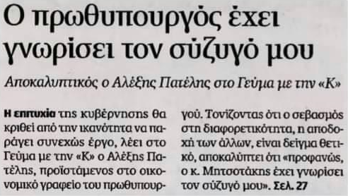 Προφανώς η Καθημερινή και το γρ. Πρθ θα είχαν πολύ σοβαρούς λόγους να μας ενημερώσουν για τον την συζυγο ενός υψηλά αμοιβομενου συμβούλου του Μαξίμου που εισηγείται δε οικονομικά μέτρα και πολλές φορές δυσάρεστα για τον Έλληνα εργαζόμενο και την ελληνίδα νοικοκυρά.