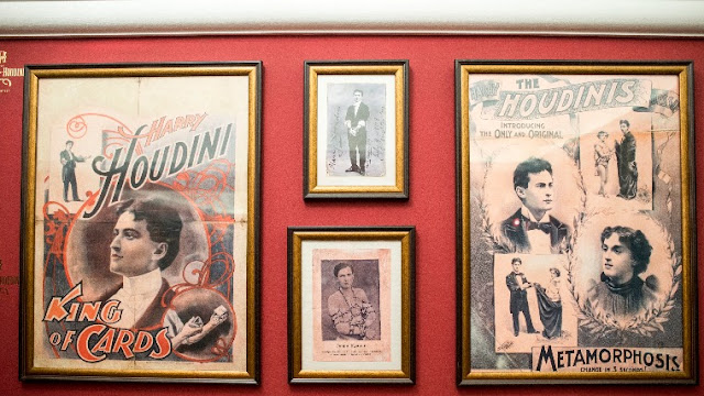 Στα εκθέματα του Μουσείου περιλαμβάνονται χειροπέδες, σπάνια, ασυνήθιστα αντικείμενα, πολλές φωτογραφίες για τη ζωή και τις παραστάσεις του Χάρι Χουντίνι και επίσης μία Βίβλος από το 1883 που ανήκε στην οικογένειά του μεγάλου καλλιτέχνη των αποδράσεων.