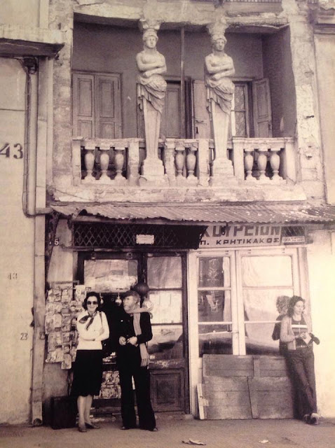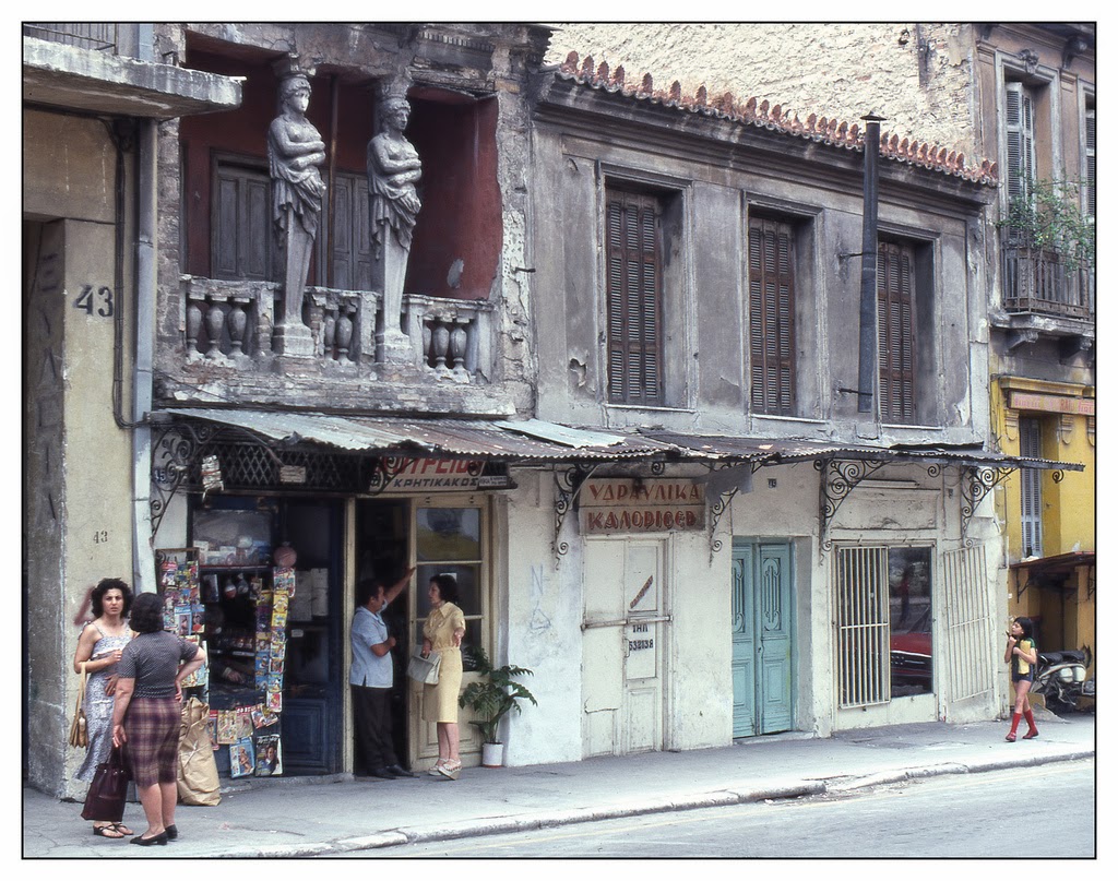 (Ο Γιάννης Τσαρούχης φωτογραφίζεται στην Ασωμάτων, κάτω από τις καρυάτιδες)