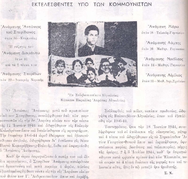 1943-1944 ΦΟΝΕΥΘΕΝΤΕΣ ΥΠΟ ΤΩΝ ΕΛΑΣΙΤΩΝ, ΑΙΓΙΑΛΙΑ – ΚΑΛΑΒΡΥΤΑ – ΦΕΝΕΟ ΞΕΚΛΗΡΙΣΜΑ 4μελους ΟΙΚΟΓΕΝΕΙΑΣ ΜΕΤΑ ΤΩΝ ΤΕΚΝΩΝ 14 ΚΑΙ 11 Ετών.