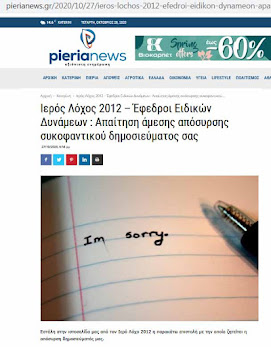 Ακολούθησε άμεση παρέμβασή μας και  (προς τιμήν του pierianews) διαγραφή του συκοφαντικού άρθρου από την ιστοσελίδα και τα Μέσα Κοινωνικής δικτύωσής και δημοσίευση της επιστολής που τους στείλαμε (εδώ)  :