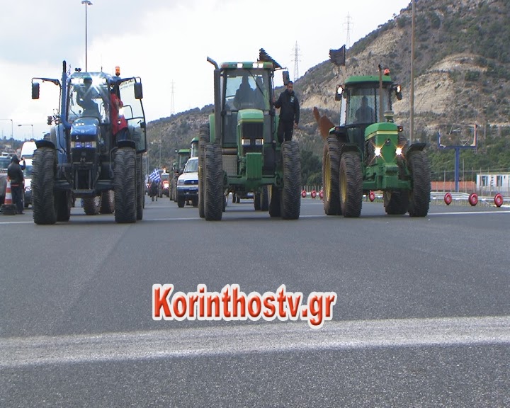 Πρόκειται για αγρότες από το μπλόκο της παλαιάς Σωληνουργίας, οι οποίοι μετά από αυτοκινητοπορεία στην πόλη της Κορίνθου, έφτασαν στα διόδια Ισθμού, στο Καλαμάκι και έκλεισαν την εθνική οδό.