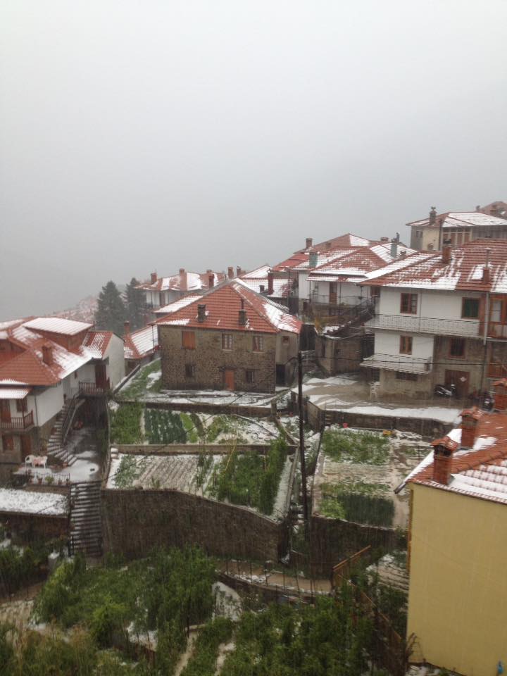 Απο τη σφοδρή χαλαζόπτωση ,άσπρισαν οι στέγες και οι κήποι των σπιτιών ,με τους κατοίκους να βρίσκονται αντιμέτωποι με ανυπολόγιστες ζημιές στις καλλιέργειές τους ,ενώ σημαντικά προβλήματα έχουν δημιουργηθεί και σε αρκετούς δρόμους μέσα στο χωριό .
