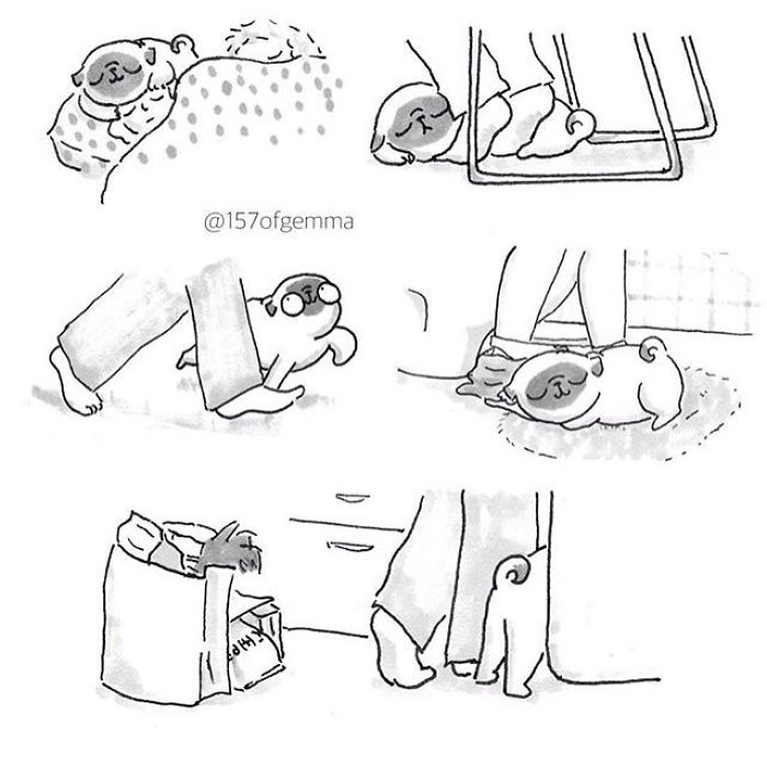 «Μου έλειπε τόσο πολύ το σκυλάκι μου, ο Μότσι, ενώ εργαζόμουν, που άρχισα να σχεδιάζω γι ‘αυτόν στο μετρό, στο δρόμο μου και στον γυρισμό από την δουλειά». Έτσι ξεκίνησαν αυτά τα αξιολάτρευτα σκίτσα.