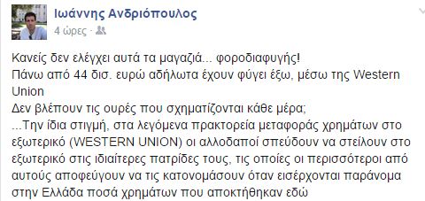 Πάνω από 44 δισ. ευρώ αδήλωτα έχουν φύγει έξω, μέσω της Western Union…
