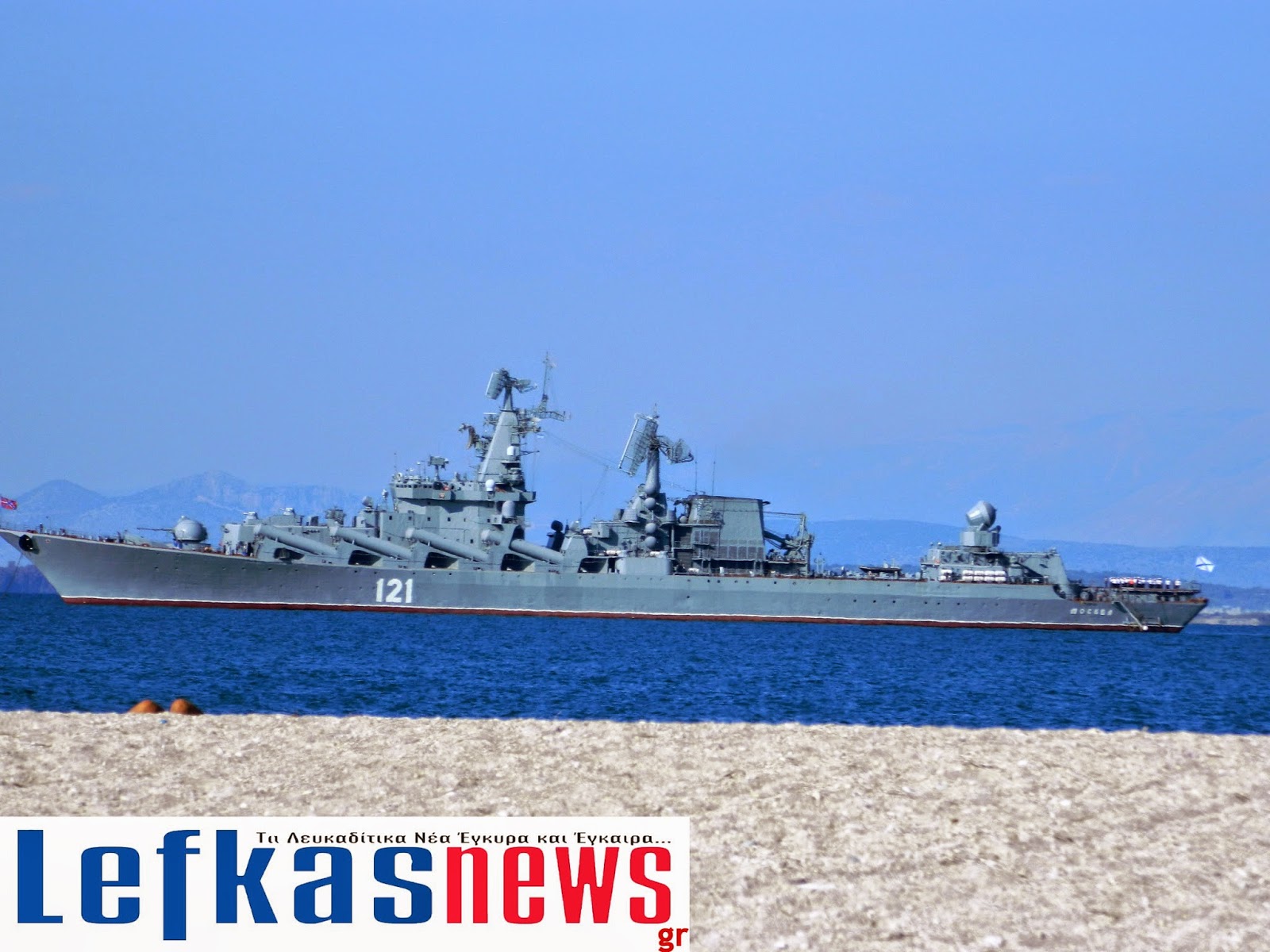 Μια μαγική εικόνα και με πολλές αντιθέσεις απόλαυσαν όσοι βρισκόταν χθες το απόγευμα στην παραλία της Λευκάδας από τη μια γόνδολα και οι βαρκούλες που ήταν στη λιμνοθάλασσα ενώ στο βάθος να διακρίνετε το επιβλητικό καταδρομικό πυραύλων «Μοσκβά».