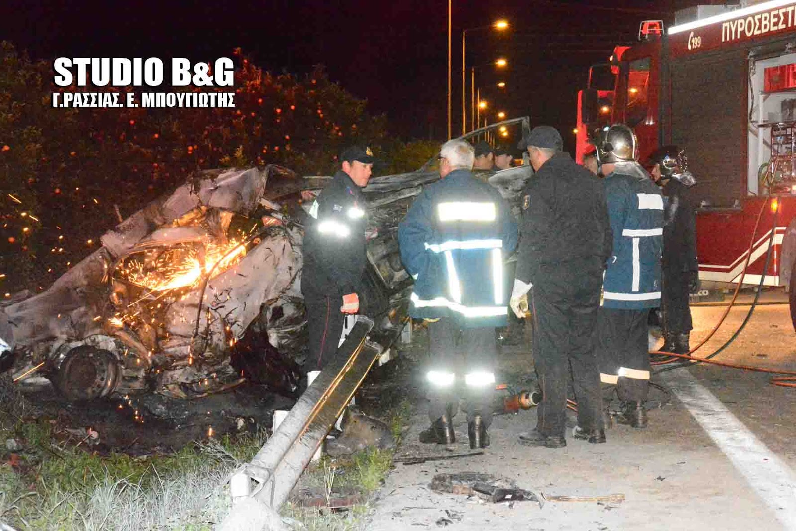 Συμφωνα με νεότερη πληροφόρηση το ατύχημα σημειώθηκε όταν ένα όχημα που κινούταν προς Αθήνα για να αποφύγει ένα αδέσποτο σκυλί έκανε ελιγμό, ένα αυτοκίνητο που ακολουθούσε μάρκας Μερτσέντες βγήκε στο αντίθετο ρεύμα για να μην συγκρουστεί με το προπορευόμενο όχημα και συγκρούστηκε μετωπικά με όχημα που κινούταν προς Άργος και το οποίο τυλίχθηκε στις φλόγες βρίσκοντας ο οδηγός του φρικτό θάνατο.