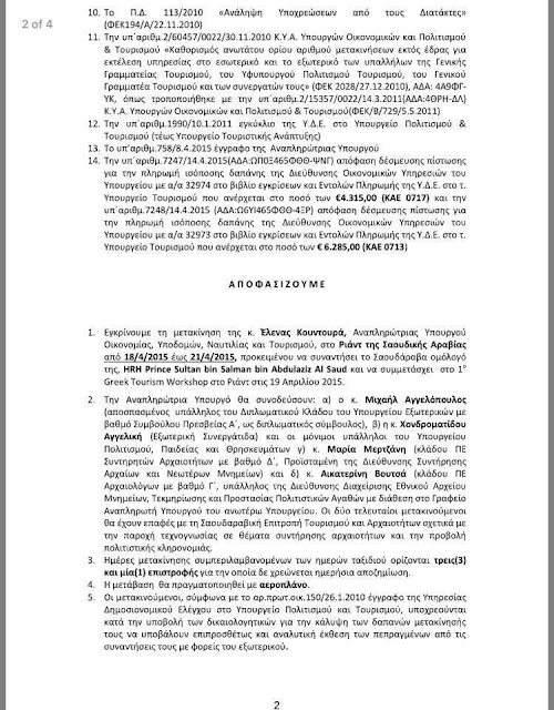 Οι συντηρητές αρχαιοτήτων που συνόδευαν την υπουργό τουρισμού στην Σαουδική αραβία, πηγαν για να κάνουν μαθήματα λεει συντήρησης αρχαιοτήτων. Ωραία πήγαν αλλά και τους προσφέρουμε τεχνογνωσία με ανθρώπινο δυναμικό από το δημοσιο και πληρώσαμε και την διαμονή για τρεις μέρες στον καθένα 1000; Ελλάς το μεγαλείο σου.