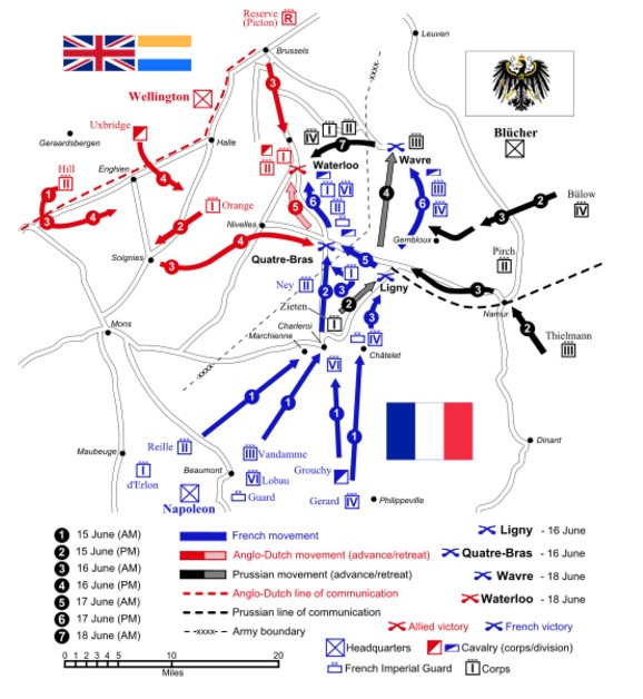 Μετά από μια ιστορικής σημασίας απόδραση, ο Ναπολέων επέστρεψε στη Γαλλία και στρατολογώντας τους βετεράνους των εκστρατειών του συνέχισε να τρομοκρατεί τα ευρωπαϊκά εδάφη. Σε αυτό βοήθησε και ο ίδιος ο Λουδοβίκος ΙΗ’ που εντωμεταξύ είχε ενθρονιστεί με τη βοήθεια των ευρωπαίων συμμάχων. Οι δυνάμεις που έστειλε για να το συλλάβουν συμμάχησαν μαζί του δημιουργώντας έναν ακόμα πιο ισχυρό στρατό.