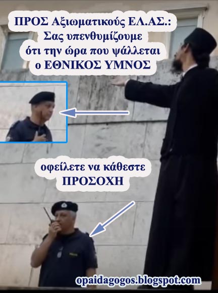 Δεν ξέρουμε τι εντολές σας δίνουν τα «αφεντικά» σας,  πάντως όταν ακούγεται ο Εθνικός μας Ύμνος, ΟΦΕΙΛΕΤΕ να στέκεστε ΠΡΟΣΟΧΗ.