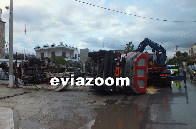 Από τύχη δεν υπήρξαν θύματα, ενώ ο οδηγός μεταφέρθηκε ελαφρά τραυματισμένος στο Νοσοκομείο Χαλκίδας.