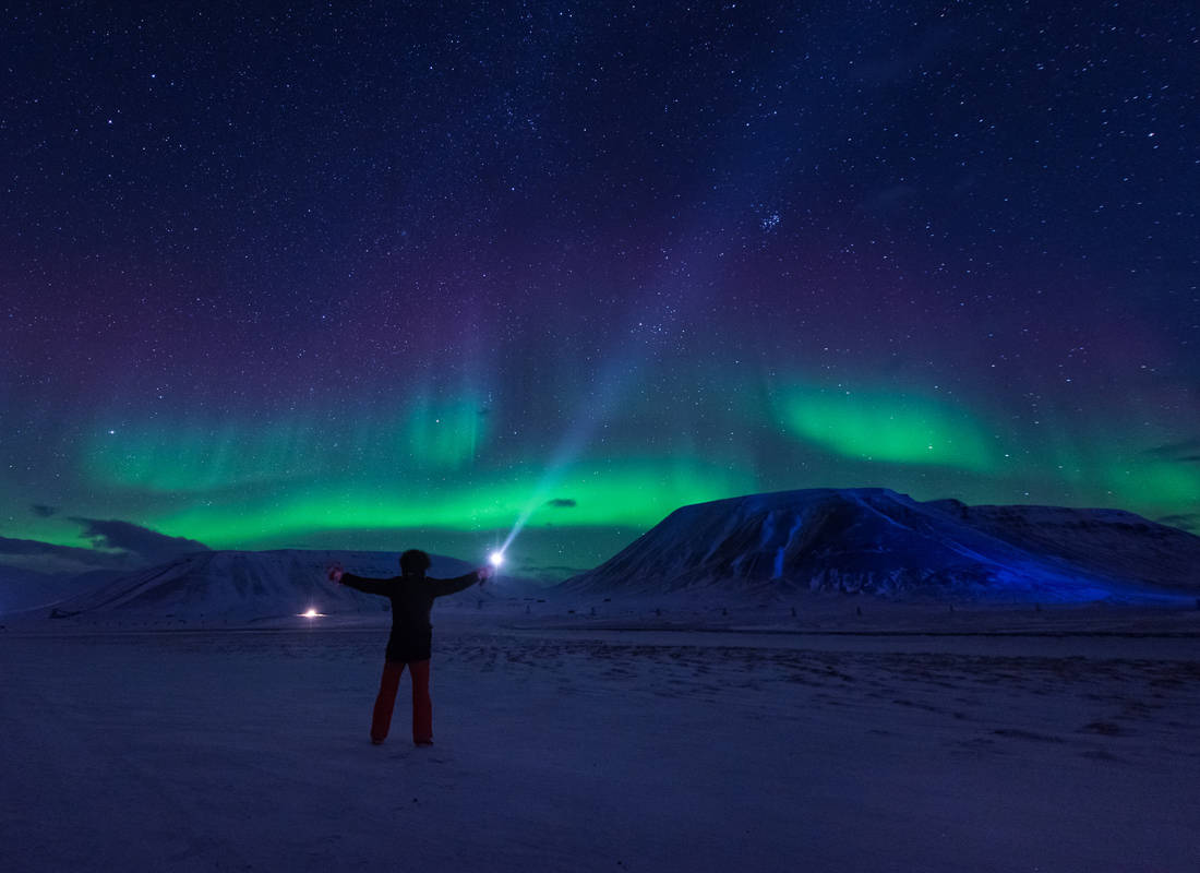 Στο διάστημα της χειμερινής σκοτεινιάς- για τέσσερις μήνες δεν κάνει την εμφάνισή της ούτε μια αχνή ακτίνα ήλιου- οι κάτοικοι του Longyearbyen πηγαίνουν στις δουλειές τους φορώντας ένα φως στο κεφάλι, και συχνά έχουν την ευκαιρία να απολαύσουν το Βόρειο Σέλας που «χορεύει» στον ουρανό.