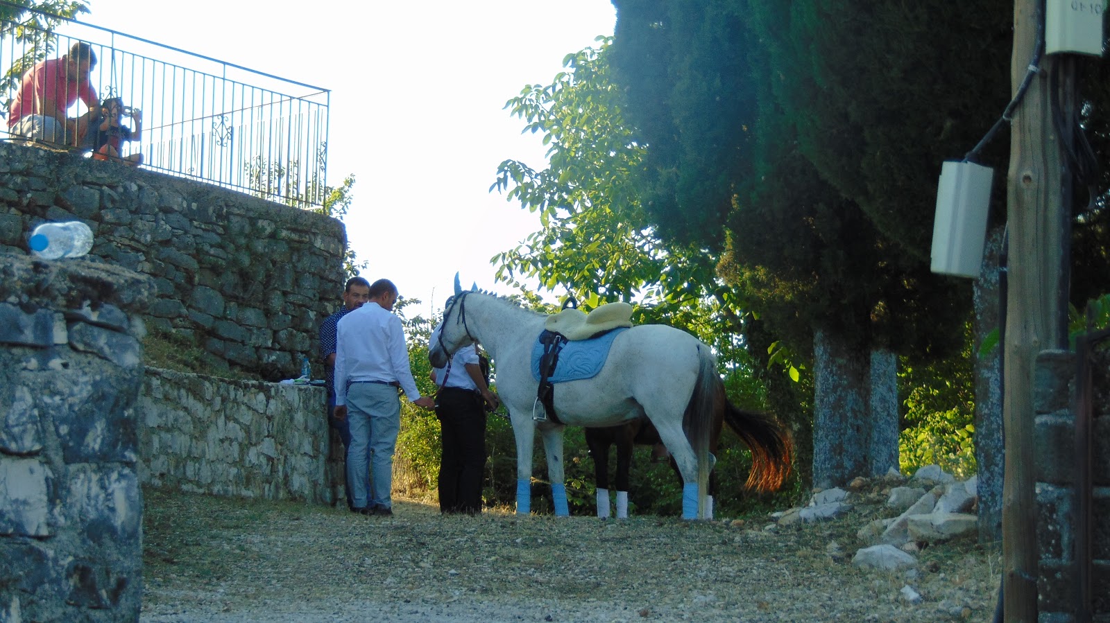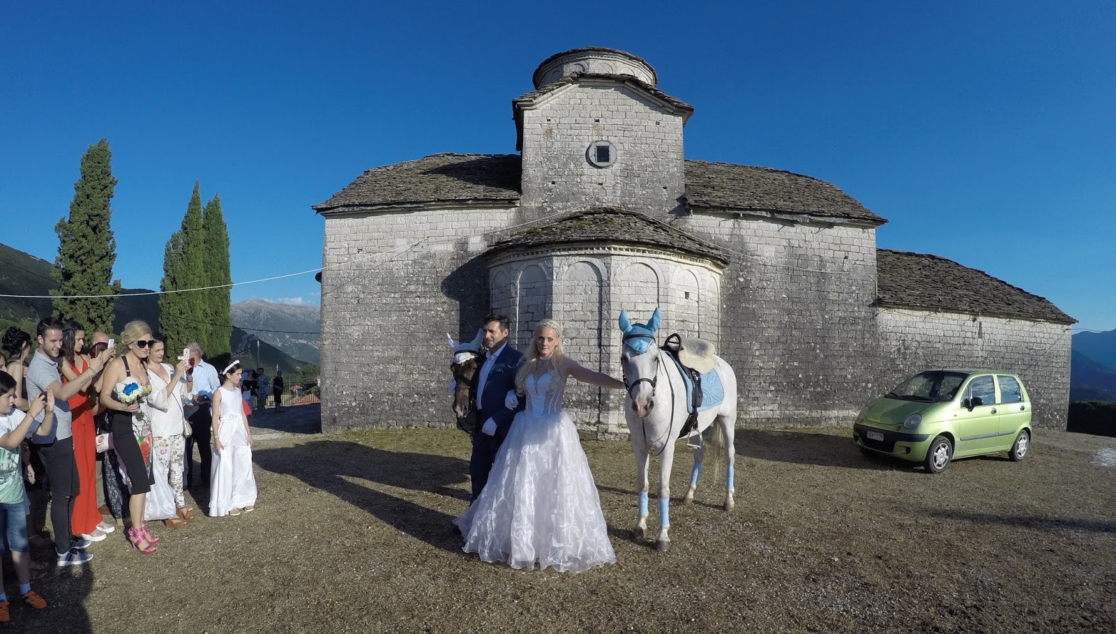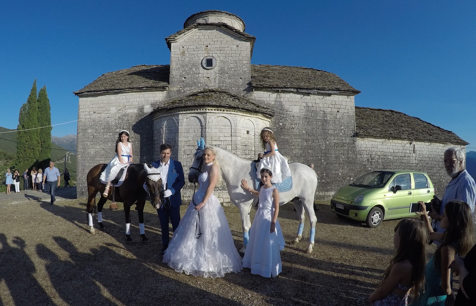 Το ζευγάρι ξεκίνησε απο το σπίτι του γαμπρού για την εκκλησιά πάνω στα άλογα,διανύοντας μια απόσταση ενός περίπου χιλιομέτρου ,με τους κατοίκους του χωριού να βγαίνουν στις αυλές και να δίνουν τις ευχές τους!
