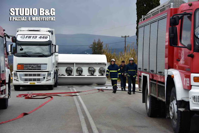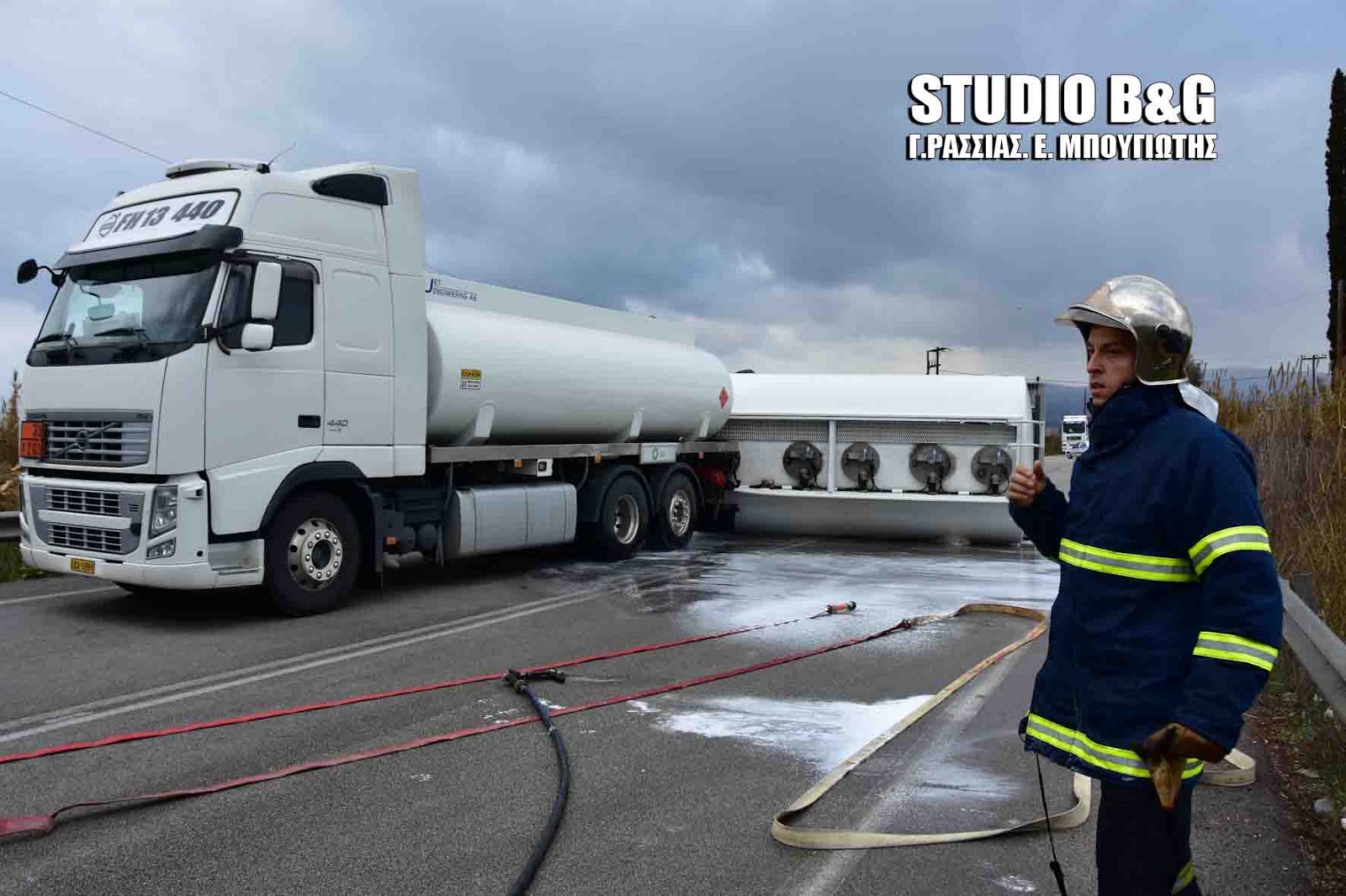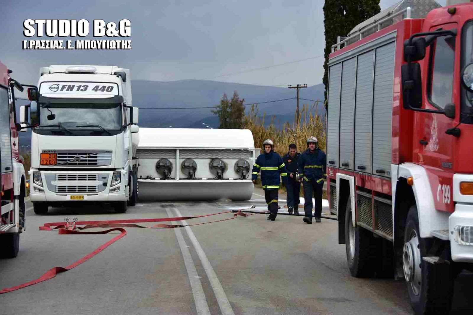 Οι χαμηλές θερμοκρασίες σύμφωνα με δηλώσεις του αρχηγού της Πυροσβεστικής υπηρεσίας Ναυπλίου ,βοήθησαν για να μην πάρει φωτιά το βυτιοφόρο κατά την ανατροπή του.