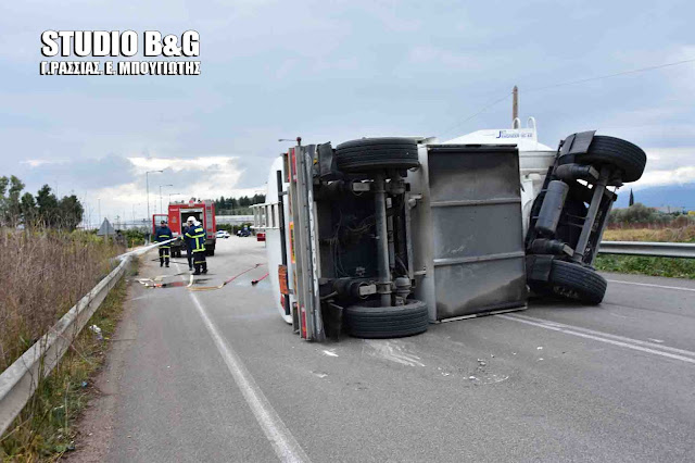 Ρεμούλκα βυτιοφόρου γεμάτη με πετρέλαιο και βενζίνη ανατράπηκε… στην Εθνική οδό Μυκηνών Ναυπλίου στο ύψος του κόμβου Αγίας Τριάδας με αποτέλεσμα να κλείσει και στα δύο ρεύματα η κυκλοφορία των οχημάτων.