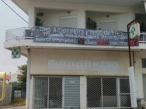Μπαράζ κλοπών, 7 στο σύνολο, αντιμετώπισε οικία (και μάλιστα επί της λεωφόρου Φυλής) με αποτέλεσμα ο ιδιοκτήτης να αναρτήσει στο μπαλκόνι του πανό αγανάκτησης προς τους «αξιότιμους» διαρρήκτες. Μην έχοντας προφανώς τρόπο να διαφυλάξει την περιουσία του και για να αποτρέψει επίδοξους