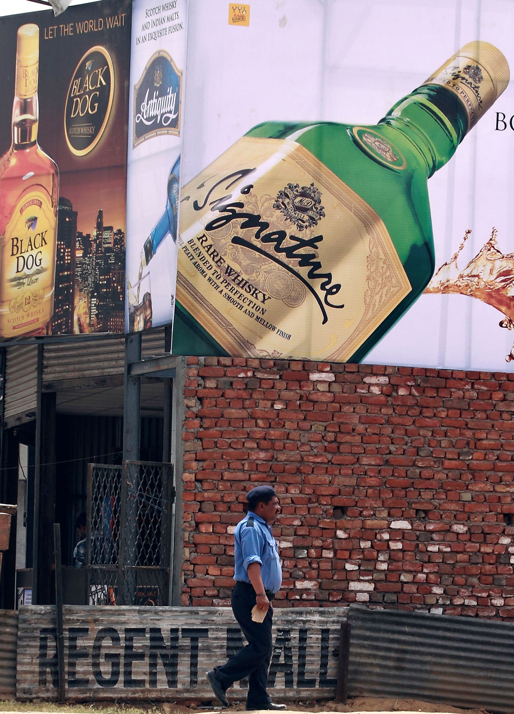 Η Ινδία απαγορεύει τη διαφήμιση των οινοπνευματωδών ποτών αλλά οι διαφημιστές έχουν βρει έμμεσους τρόπους διαφήμισης. Η απαγόρευση θεσπίστηκε τη δεκαετία του ’90 και ισχύει μέχρι σήμερα.