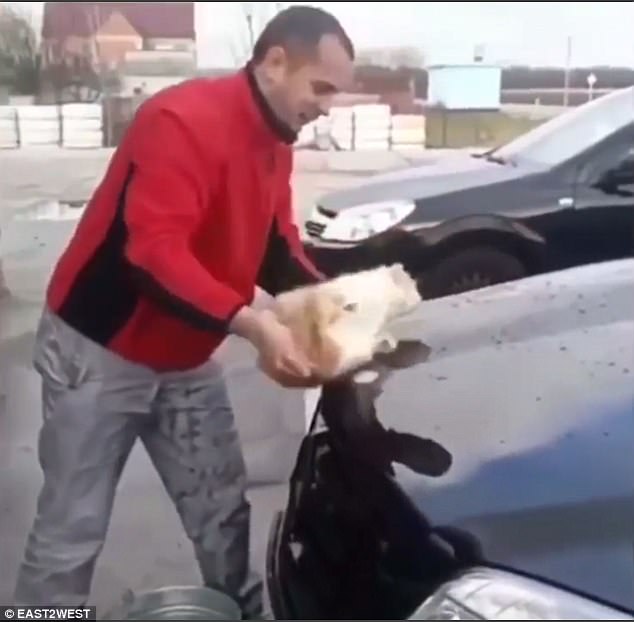 ΠΟΣΟ ΞΕΦΤΙΛΑΣ παίζει να είναι; Ρώσος πλένει το αμάξι του με την γάτα του αντί για σφουγγάρι! (ΦΩΤΟ)