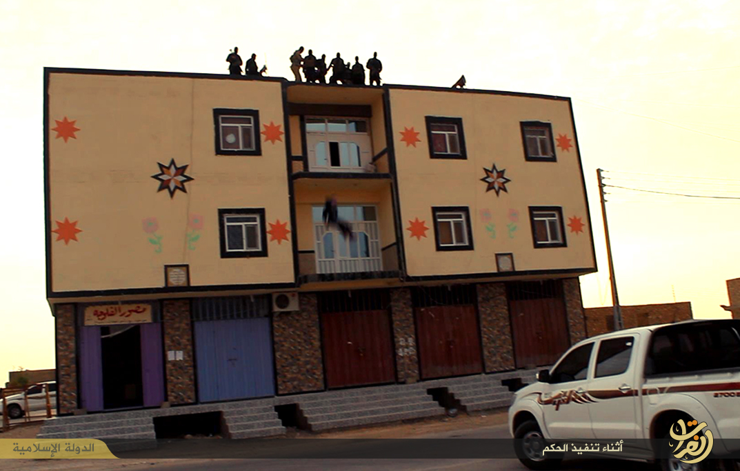 Το Ισλαμικό Κράτος έδωσε την Τρίτη στη δημοσιότητα, μέσω διαδικτύου, φωτογραφίες που απεικονίζουν τζιχαντιστές να ρίχνουν από τη στέγη ενός κτιρίου έναν άνδρα τον οποίο κατηγορούσαν για ομοφυλοφιλία, τον οποίο κατόπιν λιθοβόλησαν.