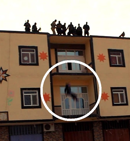 Προσοχή φωτογραφίες με σκληρό περιεχόμενο: Ένα ακόμα φριχτό έγκλημα… διέπραξε το Ισλαμικό Κράτος. Πέταξε από μια ταράτσα έναν άνδρα κατηγορούμενο για σοδομισμό – ομοφυλοφιλία και στη συνέχεια, ενώ ο άνθρωπος χαροπάλευε στο έδαφος τον αποτελείωσαν με τσιμεντόλιθους.