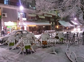 Τα πάντα έχουν καλυφθεί από ένα λευκό πέπλο και η εικόνα της πόλης της Φλώρινας θυμίζει μέρες χειμώνα.