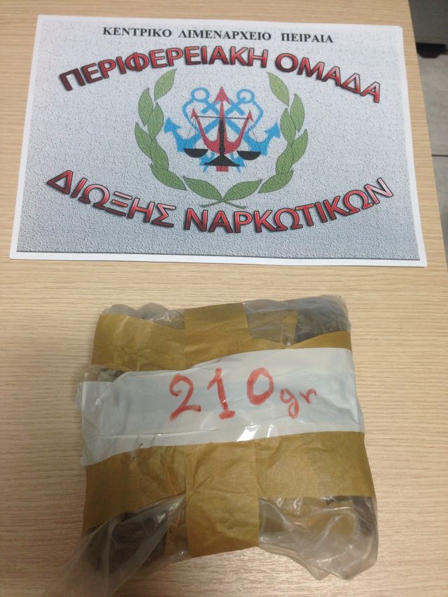 Συγκεκριμένα, σε διενεργηθέντα έλεγχο από στελέχη Λ.Σ.–ΕΛ.ΑΚΤ. με τη συνδρομή αστυνομικού σκύλου ανίχνευσης ναρκωτικών ουσιών Λ.Σ.-ΕΛ.ΑΚΤ., κατελήφθη, εντός Ε/Γ – Ο/Γ πλοίου, 31χρονος ημεδαπός να μεταφέρει χάρτινο κυτίο περιέχον ακατέργαστη κάνναβη μικτού βάρους διακοσίων δέκα γραμμαρίων (210γρ.)