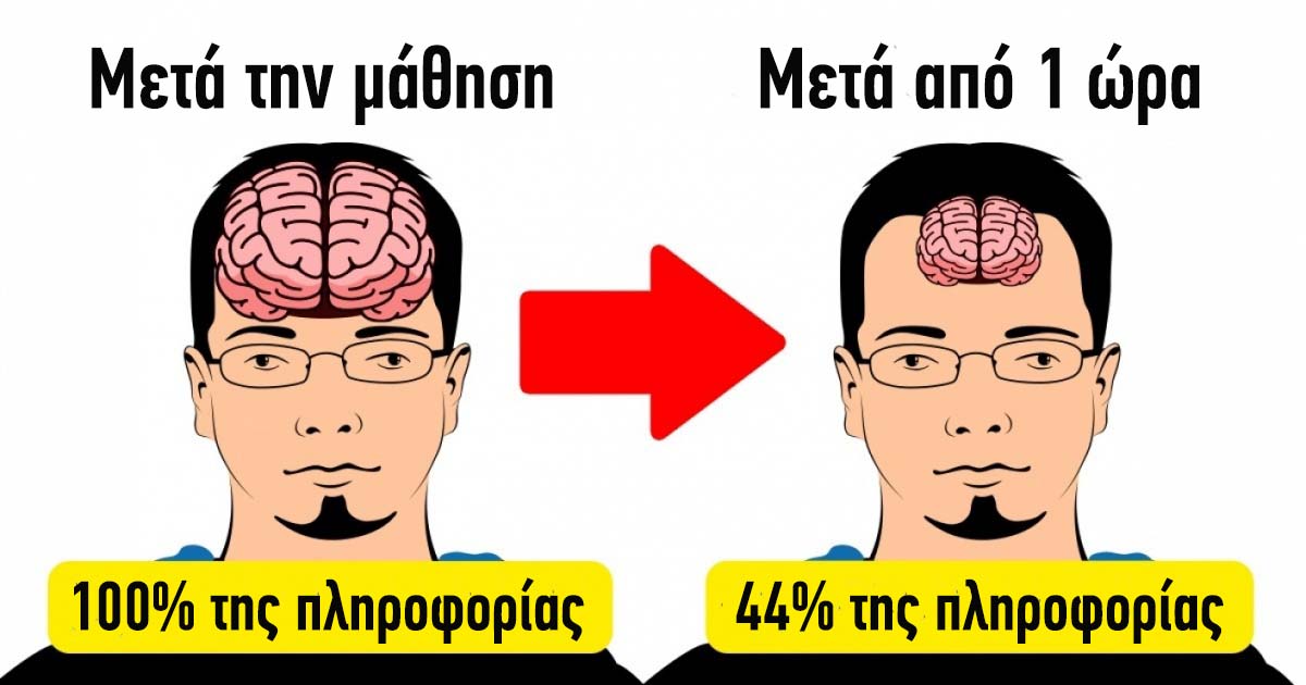 Η καμπύλη λήθης του Ebbinghaus δείχνει ότι μόλις 1 ώρα αφότου μάθουμε κάτι ξεχνάμε τις μισές πληροφορίες. Μια εβδομάδα αργότερα θυμόμαστε μόνο το 20%.